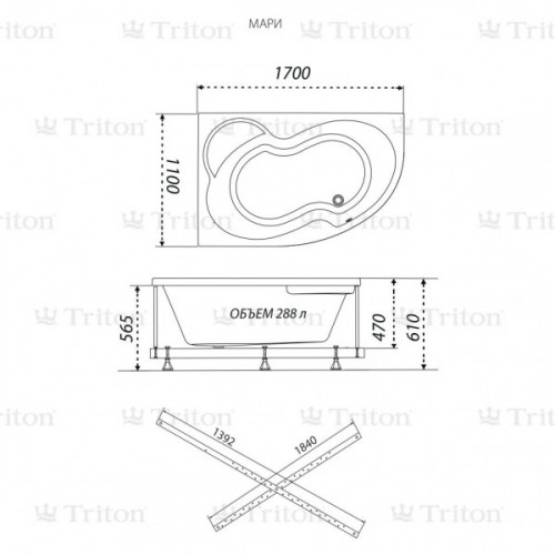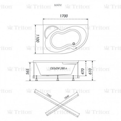 Акриловая ванна ТРИТОН Мари 170x110 L/R