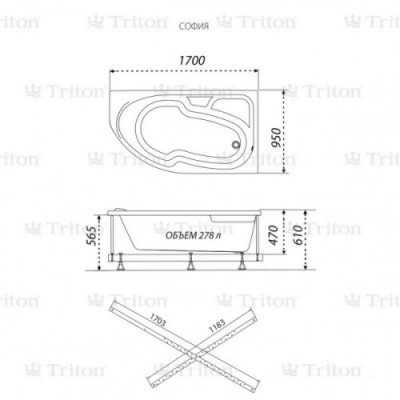 Комплект: ванна каркас фронтальная панель слив-перелив