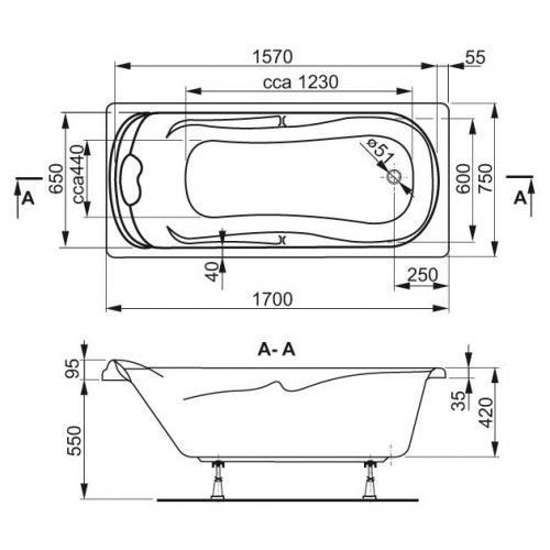 Артикул VPBA170CHA2X-04 Форма Прямоугольная Гарантия 11 лет Производство Чехия Длина, см 170 Ширина, см 75 Высота, см 65 Глубина, см 42 Объем, л 210 Габариты (ВхШхГ), мм 1700x750x0