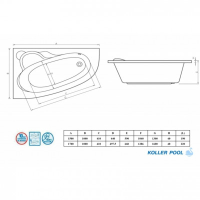 Акриловая ванна Koller Pool Nadine 170х100 R Польша