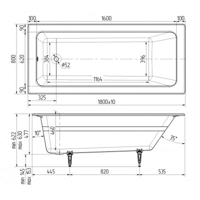 ВАННА ЧУГУННАЯ Wotte Line Plus 1800х800х477