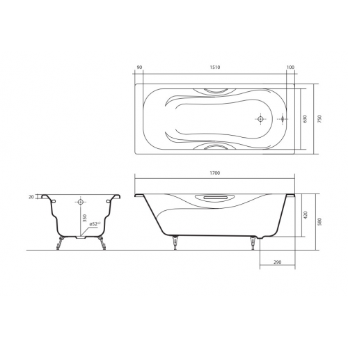 Чугунная ванна Aquatek ГАММА 170х75