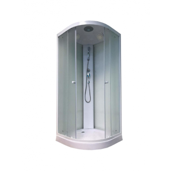Бюджетная компактная кабина – отличный выбор для маленькой ванной комнаты и дачи. Светлая кабина визуально расширяет пространство, а полукругла форма экономит полезную площадь в санузле.