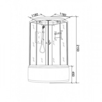 Красивая форма кабины четверть круга, универсальная ориентация и современный дизайн кабины, позволит ей прекрасно вписаться в любой интерьер.