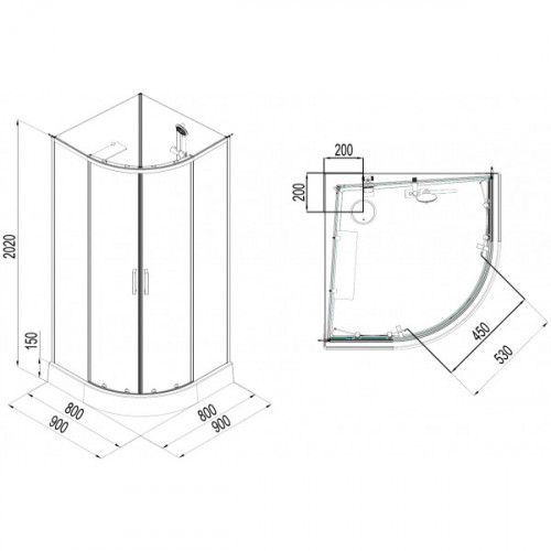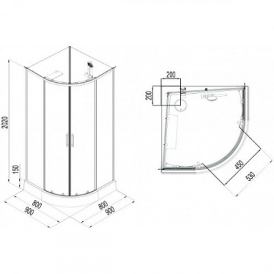 Размер 90*90*205 Низкий поддон Цвет задних стенок Серый Цвет передних стекол Тонированное