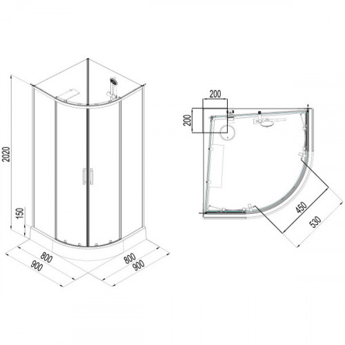 Размер 90*90*208 Низкий поддон Цвет задних стенок Белый Цвет передних стекол Тонированное