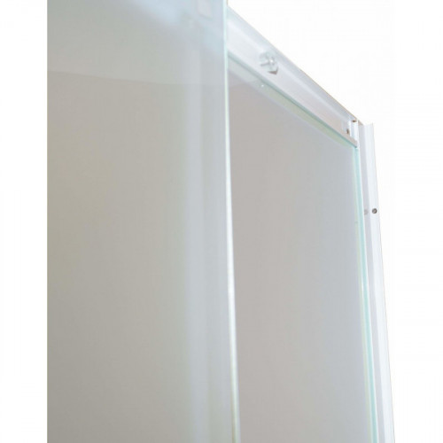 Уголок из матового стекла и белого алюминиевого профиля лаконично впишется практически в любое оформление ванной комнаты. Модель практична. На матовом стекле не видны разводы от воды, полотно легко чистить.