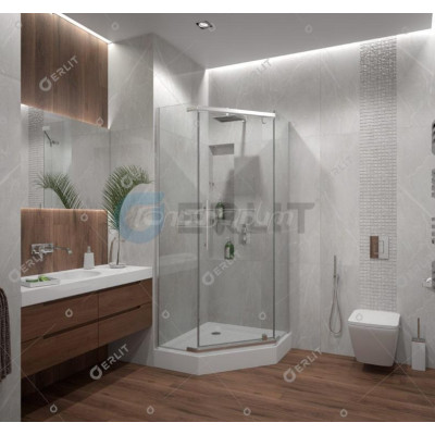 Пятиугольное душевое ограждение Erlit ER 10110V-C4 без поддона – это легкий и прочный алюминиевый каркас и прозрачные стекла. Хромированное покрытие защищает конструкцию от коррозии и мелких повреждений. Для душевых уголков этой серии используются закаленные стекла 6-миллиметровой толщины.Тонированное стекло.