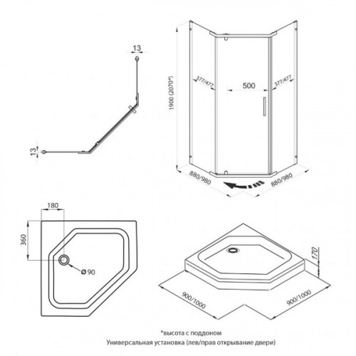 Душевая кабина Aquacubic 3302A grey black (90*90*220)