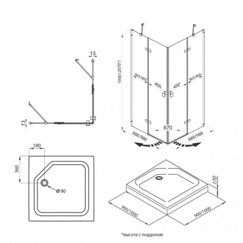 Размер (мм) 900*900*2070