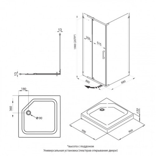 Размер (мм) 900*900*2070