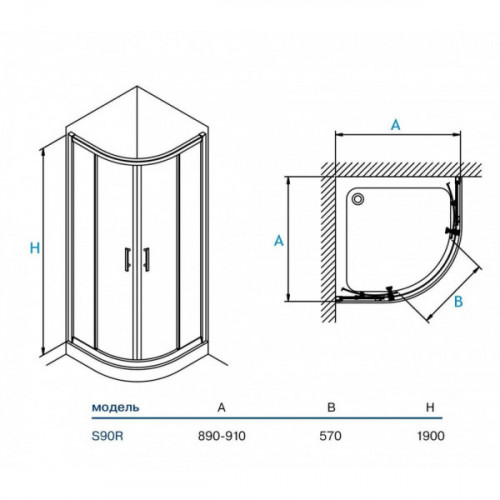 Артикул S90RG Страна Австрия Гарантия 5 лет Длина, см 90 Ширина, см 90 Высота, см 190 Детальное описание Душевое ограждение полукруглое 90х90x190 Koller Pool STYLE стекло матовое. * каленое стекло 4 мм;
