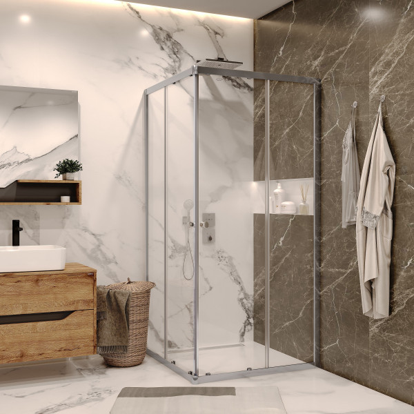 Душевой уголок дверь раздвижная 90x90 GROSSMAN GR-9090So профиль хром стекло прозрачное 5 мм