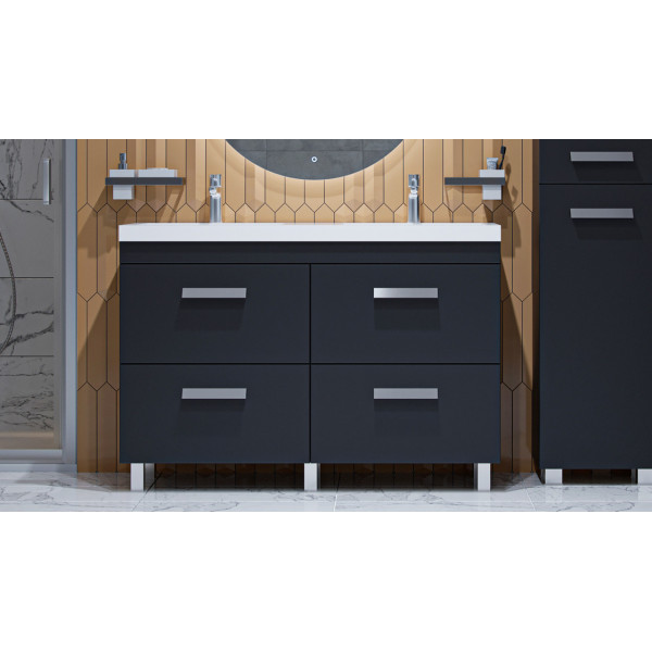 Срок поставки 10-14 дней Страна Россия Ширина, см 120 Высота, см Глубина, см 45 Тумба напольная VELVEX Orlando 120 серый с умывальником в комплекте. Тип крепления: напольный Размер: Ш1200хГ445хВ799 мм Материалы тумбы: МДФ, полимерное покрытие ПВХ, европейская фурнитура Система хранения: два выдвижных ящика Размер тумбы с раковиной: Ш1200хГ450±5хВ849 мм (раковина Classica 120)