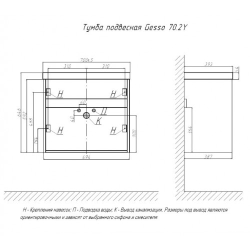 Срок поставки 10-14 дней Страна Россия Ширина, см 70 Высота, см 59 Глубина, см 39 Тумба подвесная VELVEX Gesso 70. 2Y белый/дуб сонома с умывальником в комплекте. Тумба подвесная VELVEX Gesso 70. 2Y белый/дуб сонома Размер: Ш694хГ387хВ592 мм Материалы тумбы: МДФ, влагостойкая ЛДСП, полимерное покрытие ПВХ, врезная ручка, европейская фурнитура Система хранения: два выдвижных ящика с системой открывания push-to-open Производство Россия. Все изделия поставляются в собранном виде с комплектом креплений.