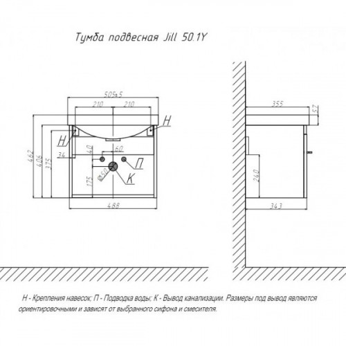 Срок поставки 10-14 дней Страна Россия Ширина, см 50 Высота, см 41 Глубина, см 34 Тумба подвесная VELVEX Jill 50 белый матовый с умывальником в комплекте. Тумба подвесная VELVEX Jill 50 белый матовый Раковина керамическая модель 9595(50) Ш505±5хГ355хВ145 мм Материал: керамика Раковина оснащена системой против перелива. Тумба подвесная Jill 50, белый матовый Ш488хГ343хВ406 мм Материалы тумбы: МДФ, МДФ, полимерное покрытие ПВХ, влагостойкая ЛДСП, лицевая фурнитура, европейская фурнитура Система хранения: один выдвижной ящик с механизмом плавного закрывания Размер тумбы с раковиной: Ш505±5хГ355хВ462 мм (раковина 9595(50)) Производство Россия. Все изделия поставляются в собранном виде с комплектом креплений.