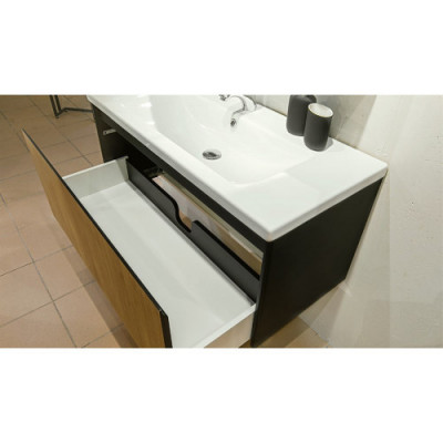 Срок поставки 10-14 дней Страна Россия Ширина, см 100 Высота, см 44 Глубина, см 45 Тумба подвесная VELVEX Klaufs 100. 1Y шатанэ-черный с умывальником в комплекте. Тумба подвесная Klaufs 100 (шатанэ/черный) из серии Klaufs. Производитель - Velvex. Артикул изделия - tpKLA. 100. 1Y-617. 217. Ширина - 99 см. Глубина - 44,3 см. Высота - 44 см. Цвет мебели - Черный+дерево. Материал корпуса - МДФ. Покрытие корпуса - пленка матовая. Материал фасада - МДФ. Покрытие фасада - HPL пластик матовый. Монтаж - подвесной. Внутреннее наполнение: комплект крепежа для крепления к стене, 1 выдвижной ящик, выдвижной органайзер. Вес - 23,4 кг. Страна производитель - Россия. Гарантия - 5 лет. Мебельное предприятие VELVEX располагается в Нижнем Новгороде. Передовой дизайн, современное оборудование, опытный персонал и комплектующие из Европы гарантируют мебели VELVEX длительный срок службы. VELVEX находится в постоянном поиске и регулярно предлагает новые серии мебели для ванной комнаты. Следите за новинками VELVEX!