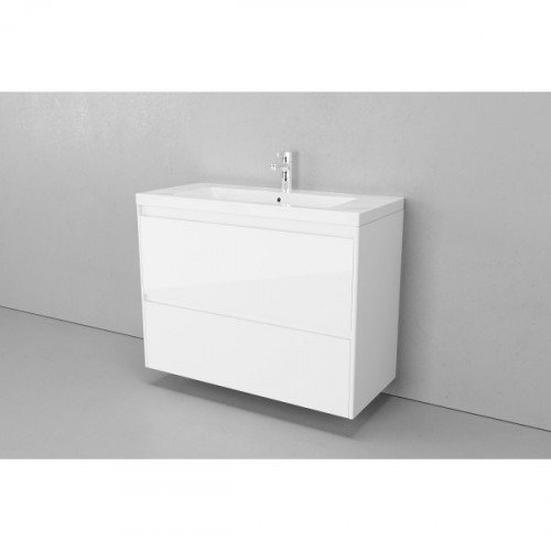 Тумба подвесная VELVEX Klaufs 100.2Y.NEW белый с раковиной Velvex Mario 100