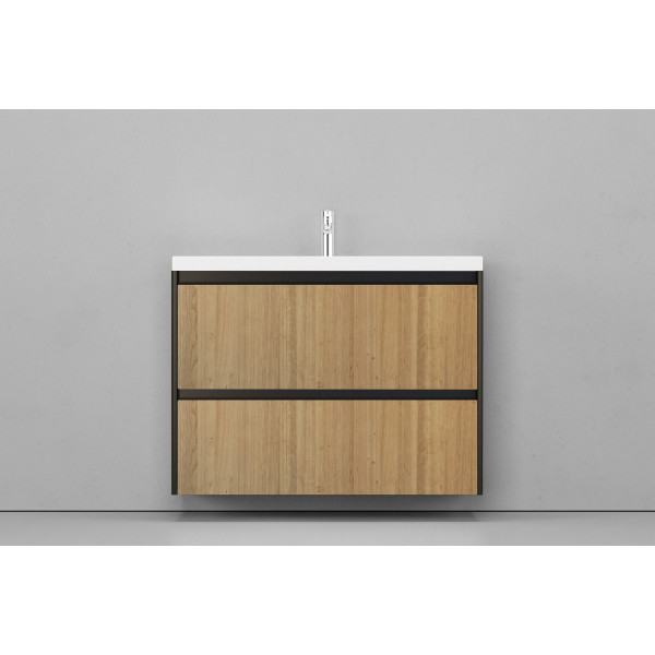 Тумба подвесная VELVEX Klaufs 100.2Y.NEW шатанэ черный с раковиной Velvex Mario 100