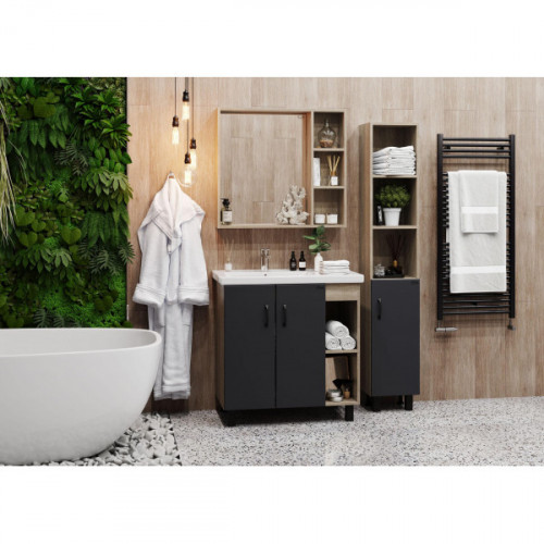 3 открытые полки обеспечивают быстрый доступ к часто используемым аксессуарам, место под зеркалом создано для косметических средств или декоративных элементов.