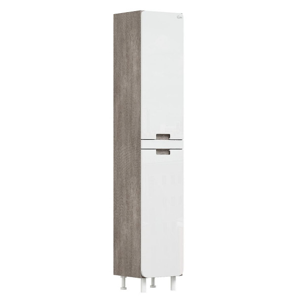 Ункальность пенала в его дизайне: корпус цвета мешковины со структурой бетона отлично сочетается с белым глянцевым фасадом с закругленными углами.