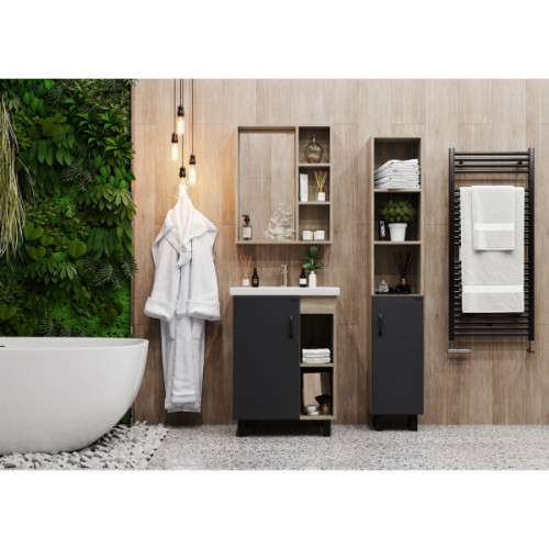 Срок поставки 10-14 дней Страна Россия Гарантия 2 года Ширина, см 30 Высота, см 170 Глубина, см 30 В пенале Onika ТИМБЕР 60.01 удачно сочетаются контрастные цвета и фактуры: серый матовый фасад с покрытием SoftTouch, корпус цвета дуба с роскошной текстурой, черная матовая металлическая фурнитура. Открытые полки сверху беспечивают быстрый доступ к часто используемым аксессуарам, а пространство за распашной дверцей снизу, снабженной системой плавного закрывания, станет удобным местом для хранения различных бытовых принадлежностей.Корпус пенала выполнен из ЛДСП, фасад - из МДФ в пленке, устойчивых к механическим воздействиям, перепадам температур и высокой влажности.Черная металлическая ручка и 4 ножки (2 декоративных черных и 2 пластиковых) идут в комплекте с тумбой.
