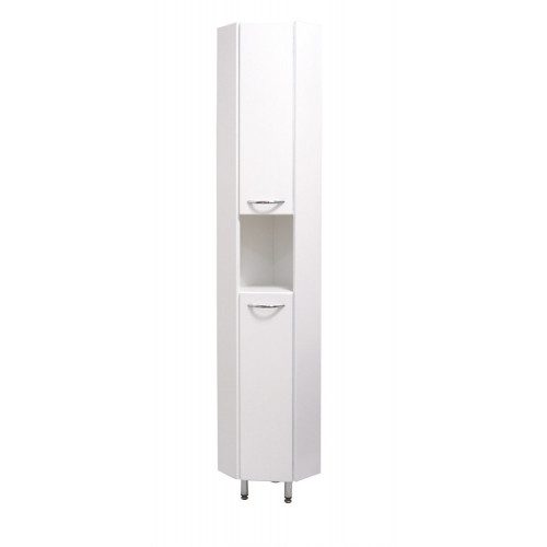 Срок поставки 10-14 дней Страна Россия Гарантия 2 года Ширина, см 42,4 Высота, см 190 Глубина, см 31,5 Угловой пенал Onika ДЮНА 30.10 У - настоящая находка для компактной ванной комнаты: он значительно экономит место без потери функциональности.Белая глянцевая поверхность, простые узкие ручки и минималистичный дизайн подойдет к любому интерьеру, а открытая полка посередине и два больших отделения за распашными дверями, оснащенными механизмом плавного закрывания - отличное место для хранения необходимых вещей.Пенал имеет универсальную ориентацию: при установке верх и низ пенала можно менять местами, а дверцы могут открываться как влево, так и вправо.Корпус пенала выполнен из ЛДСП, фасад - из МДФ в пленке, устойчивых к механическим воздействиям, перепадам температур и высокой влажности.2 декоративных и 2 пластиковых ножки с регулировкой по высоте, а так же 2 хромированных ручки идут в комплекте с пеналом.