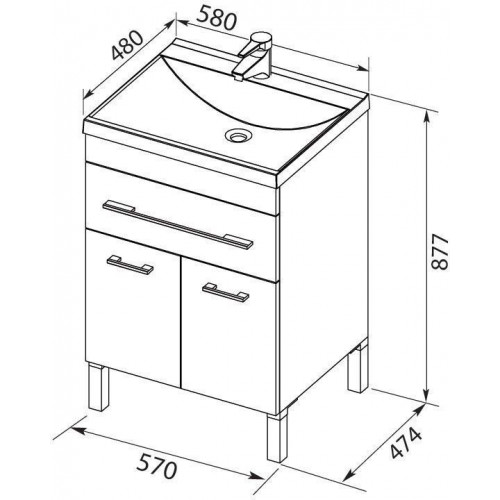 Высота, мм 875 Ширина, мм 580 Глубина, мм 480 Установка Напольная Ориентация Универсальная Тип устанавливаемой раковины Конструкция дверей Распашные;Выдвижные Материал корпуса Влагостойкий ЛДСП Материал фасада МДФ Материал раковины Литьевой мрамор Покрытие Акрил Цвет Белый