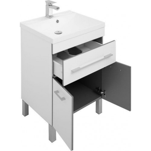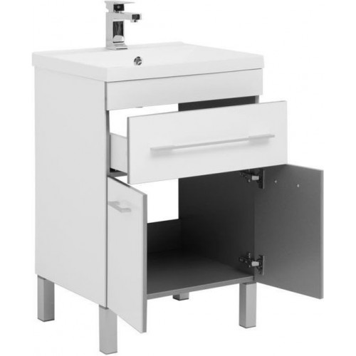 Тумба с раковиной Aquanet Верона NEW 58 белый (напольная 1 ящик 2 дверцы)