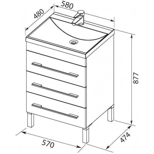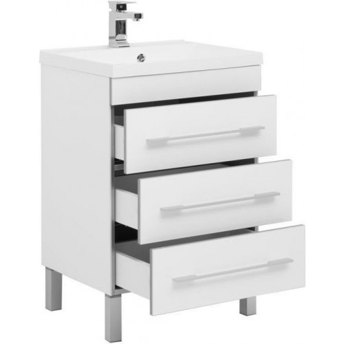 Тумба с раковиной Aquanet Верона NEW 58 белый (напольная 3 ящика)