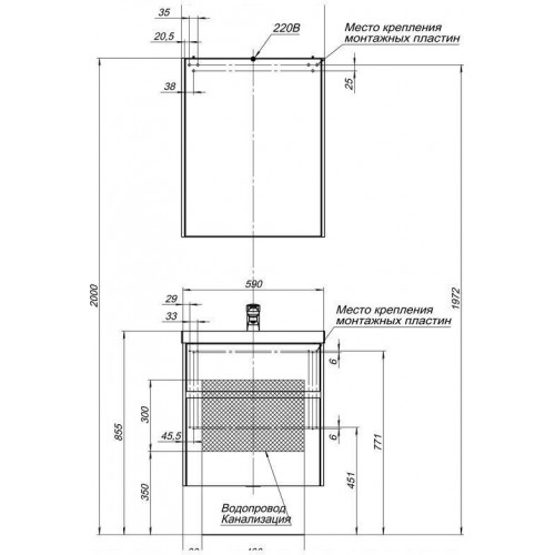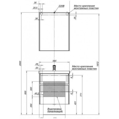 - Тумба: Aquanet Латина 60, цв.белый, 2 выдвижных ящика (179934)