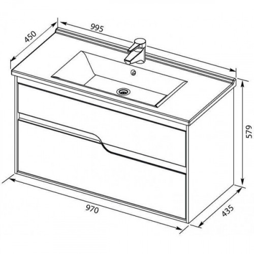 Высота, мм 579 Ширина, мм 995 Глубина, мм 450 Установка Подвесная Ориентация Универсальная Тип устанавливаемой раковины Конструкция дверей Выдвижные Материал корпуса МДФ Материал фасада МДФ Материал раковины Керамика Покрытие Краска/глянец Цвет Белый Тумба Aquanet Модена 100 белого цвета предназначена для тех, кто хочет создать особую атмосферу в своей ванной комнате, кого привлекает все оригинальное, но кто при этом отдает должное традициям, практичности и функциональности. Белоснежные корпус и фасад тумбы выполнены из влагостойких плит МДФ, а внутренние детали (боковины и днище ящиков) – из ВЛДСП в цвете «дуб сонома». Тумба оборудована выдвижными ящиками, оборудованными доводчиками известного немецкого производителя фурнитуры Hettich. Нижний ящик глубже и предназначен для размещения высоких емкостей и более габаритных вещей, верхний больше подойдет для хранения мелких предметов, для чего его пространство разделено перегородками на три места хранения. В тумбе шириной 100 см места много и все необходимое для гигиенических процедур в ванной комнате будет в порядке и всегда на своих местах. Тумба предусматривает подвесную систему монтажа. Входящая в комлект керамическая раковина внешне имеет четкий графичный рисунок четырехугольника, а вот внутренняя ее часть состоит из плавных округлых линий, благодаря чему раковину удобно чистить.