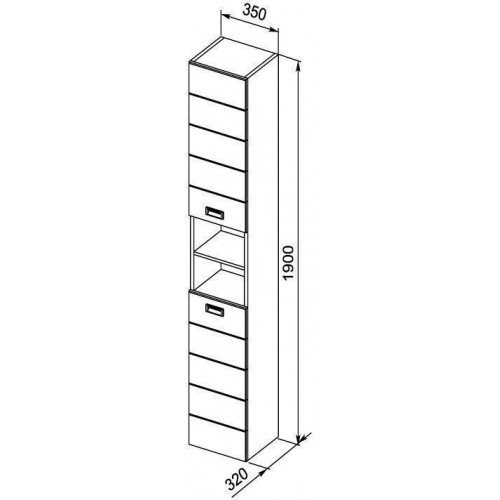 Высота, мм 1625 350 Глубина, мм 320 Установка Напольная Ориентация Правосторонняя Конструкция дверей Распашные Стильный пенал для набора мебели ванной комнаты в стиле «модерн». Оригинальные детали – ручки-прорези и ритм, создаваемый горизонтальными линиями отделки подчеркивают неординарность, экзотичность гарнитура. Функциональная часть представлена двумя вместительными отделениями с распашными дверцами и открытыми полочками, где можно расставить интерьерные аксессуары.