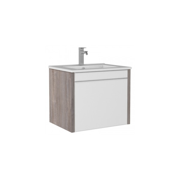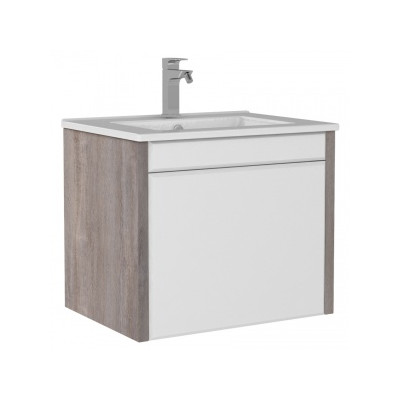Тумба подвесная под умывальник "Quadro 60" Дуб серый с двумя ящиками B2 Домино DQ1701T