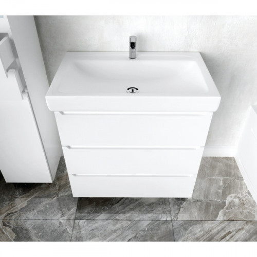 Ширина, мм 750 Глубина, мм 456 819 Цвет мебели белый Материал корпуса МДФ Покрытие корпуса пленка ПВХ Монтаж напольный Безупречное универсальное решение для любого интерьера ванной комнаты, вместительная система хранения, комфортное открывание от захвата Комментарий Раковина Тигода 80 Santek покупается отдельно