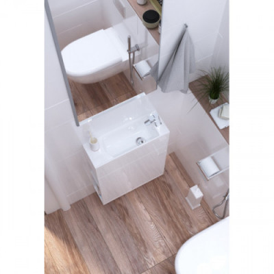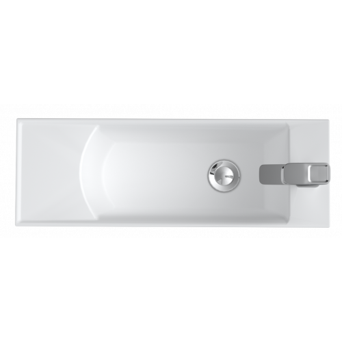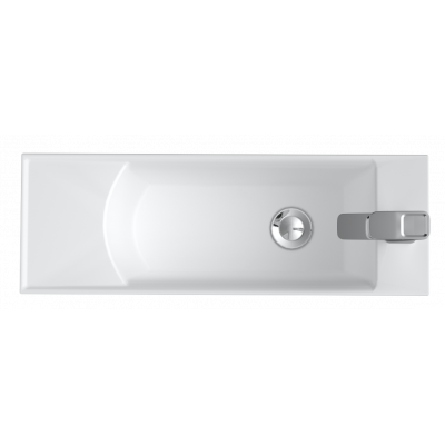 Обладает убедительным эстетическим преимуществом, выраженным в утонченных краях и малом радиусе закруглений. Раковина имеет боковой борт под повседневные аксессуары и безопасные грани по периметру (для правильного стока воды). Компактное решение найдет место в любом интерьере. Материал раковины гипоаллергенный.
