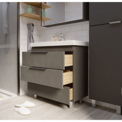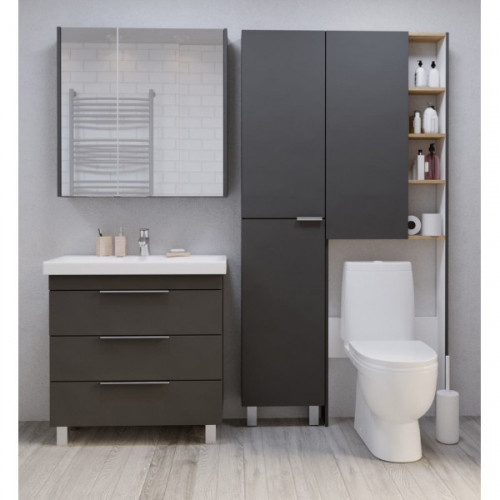 Ширина, мм 800 Глубина, мм 150 800 Цвет мебели Черный Материал корпуса МДФ Покрытие корпуса Пленка ПВХ Монтаж напольный Элегантная минималистичная и современная коллекция мебели со стильными удобными ручками. Вместительная система хранения. Gaula - это полный комплекс решений мебели для ванной комнаты. Комментарий Раковина керамическая Moduo Slim 80 продается отдельно