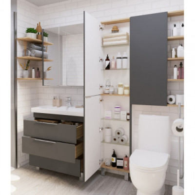 Ширина, мм 800 Глубина, мм 380 850 Цвет мебели Черный Материал корпуса МДФ Покрытие корпуса Пленка ПВХ Монтаж напольный Элегантная минималистичная и современная коллекция мебели со стильными удобными ручками. Вместительная система хранения. Gaula - это полный комплекс решений мебели для ванной комнаты. Комментарий Раковина керамическая Moduo Slim 80 продается отдельно