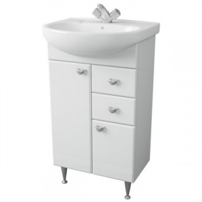 Ширина, мм 495 Глубина, мм 305 810 Цвет мебели Белый Материал корпуса ЛДСП Покрытие корпуса Монтаж напольный Компактная и функциональная тумба Story, предназначена для небольших ванных комнат. Корпус, выполненный из влагостойкой ЛДСП, и фасады из МДФ покрыты ПВХ пленкой с высокой степенью глянца. Данная модель имеет тщательно продуманную конструкцию и организацию внутреннего пространства. Комментарий Раковина Антик 55 продается отдельно