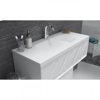 Самое большое внутреннее пространство под хранение из всех производителей России. Уникальная конструкция «парящего» ящика (максимально широкого) с тонкими боковыми стенками/ скрытым механизмом открывания (PUSH-TO-OPEN) / сифон со специальной конструкцией (в комплекте). Ящик с механизмом синхронизации, т.е. открывание фасада в любой точке нажатия! Вся сантехническая коммуникация встроена в верхний ящик. Поэтому клиент может покупать отдельно верхний модуль (или нижний).