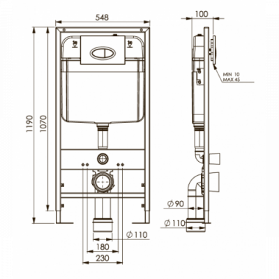 Срок поставки 10-14 дней Артикул 666 Инсталляция для подвесного унитаза Boheme 666. В комплекте поставки: смывной бачок, комплект креплений и система инсталляции. Ширина - 54,8 см. Глубина - 10 см. Высота - 119 см. Монтаж в капитальную стену и пол. Монтажная высота - 107 см. Монтажная глубина - 10 см. Подводка воды сверху бачка. Диаметр переходника для слива - 11 см. Диаметр трубы от бачка - 4 см. Объем смывного бачка - 3/6 л. Диаметр слива - 9 см. Межосевое расстояние под крепежные шпильки унитаза - 18/23 см. Управление