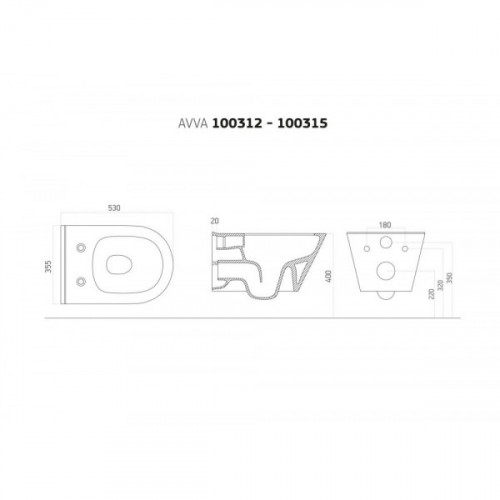 Срок поставки 10-14 дней Артикул 972-W Унитаз подвесной Avva Белый глянец безободковый антибактериальное покрытие, антигрязевое покрытие в комплекте с креплением. Каскадный слив. Система антивсплеск. Без полочки в чаше. Выпуск вертикальный в пол. Ширина 35,5 см. Длина 53 см. Высота 40 см. Высота чаши 33,5 см. Межосевое расстояние крепежа 16 см.