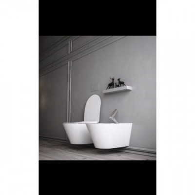 Срок поставки 10-14 дней Артикул 972-2-W Унитаз подвесной с функцией биде Avva Белый глянец безободковый антибактериальное покрытие, антигрязевое покрытие в комплекте с креплением и встроенным смесителем. Каскадный слив. Система антивсплеск. Без полочки в чаше. Выпуск вертикальный в пол. Ширина 35,5 см. Длина 53 см. Высота 40 см. Высота чаши 33,5 см. Межосевое расстояние крепежа 16 см.