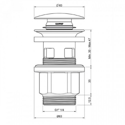 Донный клапан для умывальника, клик-клак A64IN (инокс)