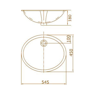 Размер (мм) 545×450×180 Раковина под столешницу (крепление в комплекте)