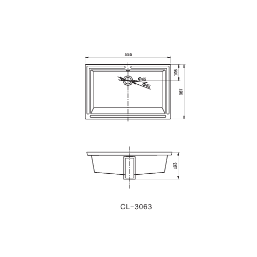 Размер (мм) 555×367×193 Раковина под столешницу (крепление в комплекте)