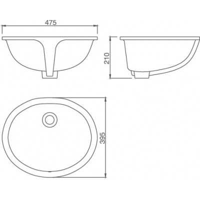 Размер (мм) 475×395×210 Раковина под столешницу (крепление в комплекте)