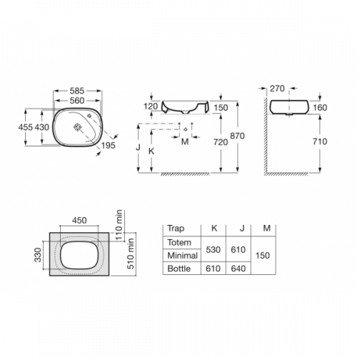 Тип раковины накладная Материал фарфор Длина 455 Ширина 585 Высота 160