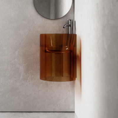 Раковина подвесная прозрачная угловая ABBER Kristall AT2705Opal коричневая
