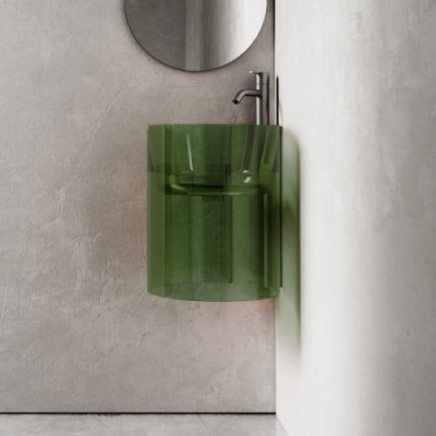 Раковина подвесная прозрачная угловая ABBER Kristall AT2705Emerald зеленая